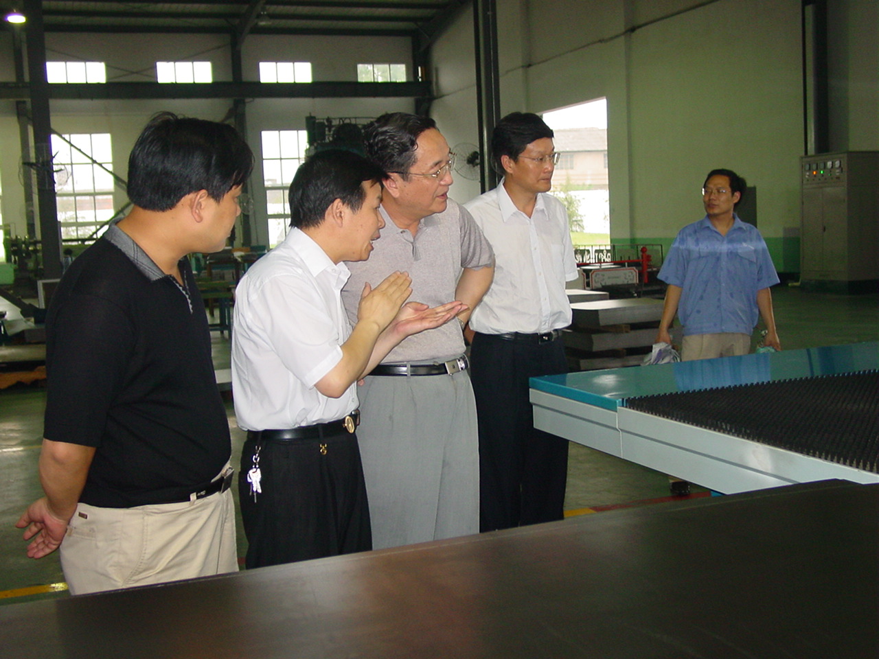 圖為7月9日,中共中央政治局委員、湖北省委書記俞正聲(左三),在天門市委書記王建鳴(左四)、市長別必雄(左一)和天門紡機公司總經(jīng)理沈方勇(左二)的陪同下,考察該公司國家級“火炬計劃”項目的場景。