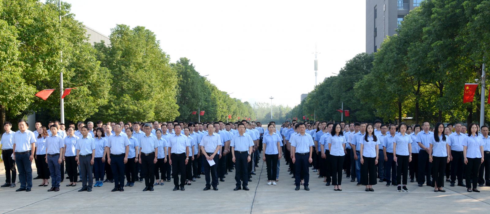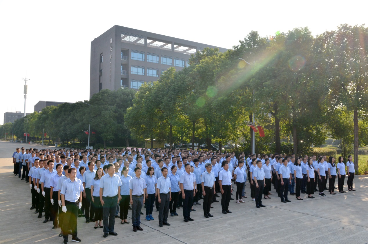 2019年9月30日早晨,一輪紅日從東方升起,給大地涂抹上一層金輝。天門紡機(jī)400多名員工在公司廣場列成方隊(duì),為即將舉行的升國旗、唱國歌活動作準(zhǔn)備。