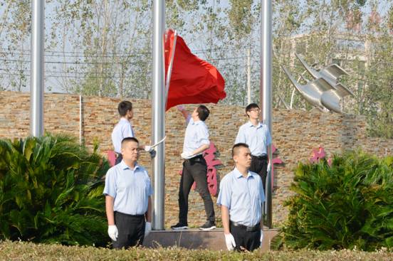 8:20時(shí),活動儀式在總經(jīng)理焦倫進(jìn)的主持下啟動,七名旗手邁正步從員工方隊(duì)繞過,直達(dá)旗壇,行進(jìn)口令威武響亮。在主持人的指令下,三名旗手將一面鮮艷的五星紅旗在莊嚴(yán)的國歌聲中徐緩地升上天空,員工方隊(duì)注目國旗,唱起雄壯的國歌。