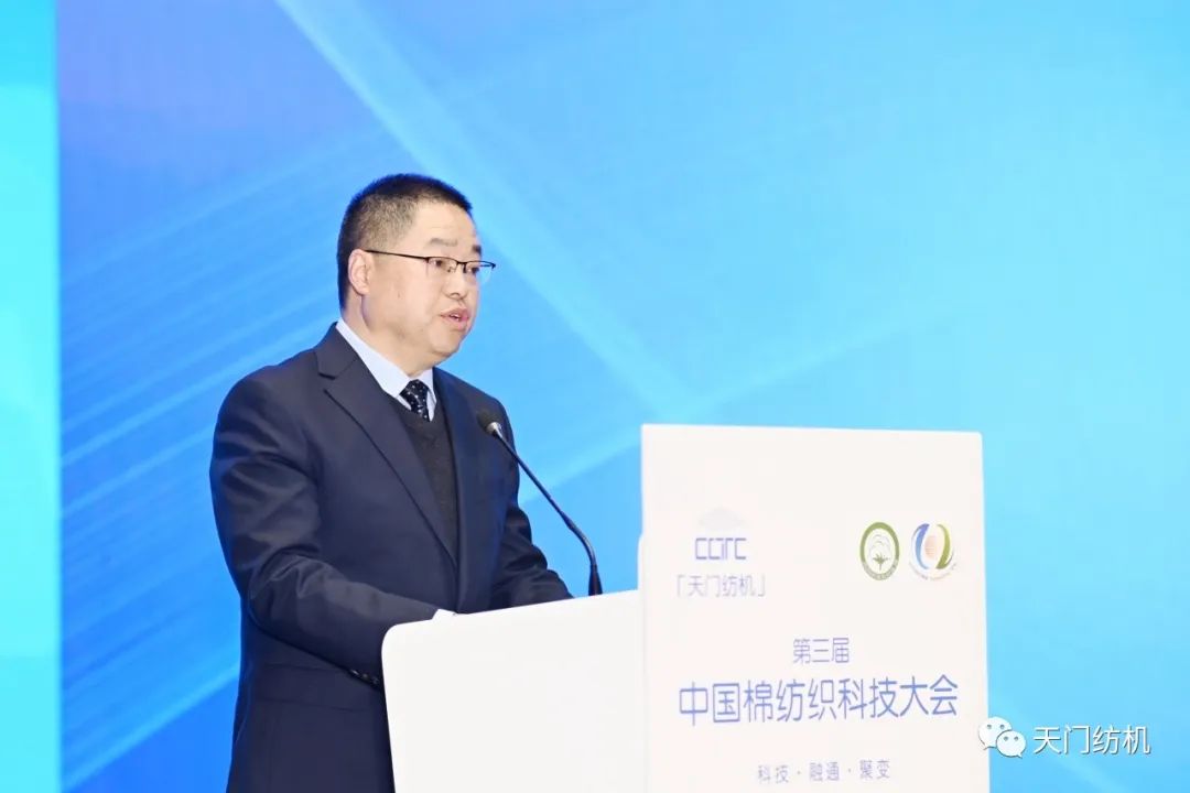 12月12日上午,中國棉紡織行業(yè)協(xié)會副會長景慎全主持開幕式,中國棉紡織行業(yè)協(xié)會會長董奎勇、湖北省經(jīng)濟(jì)和信息化廳副廳長周開斌、全國棉紡織科技信息中心主任/《棉紡織技術(shù)》期刊社社長王楊俊、天門紡機總經(jīng)理焦倫進(jìn)分別為大會致辭。