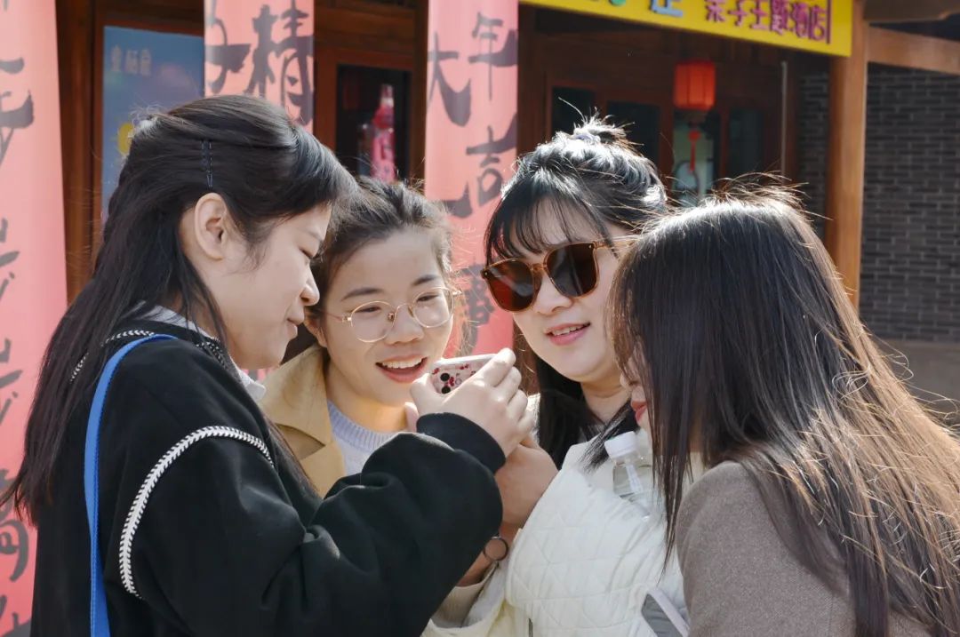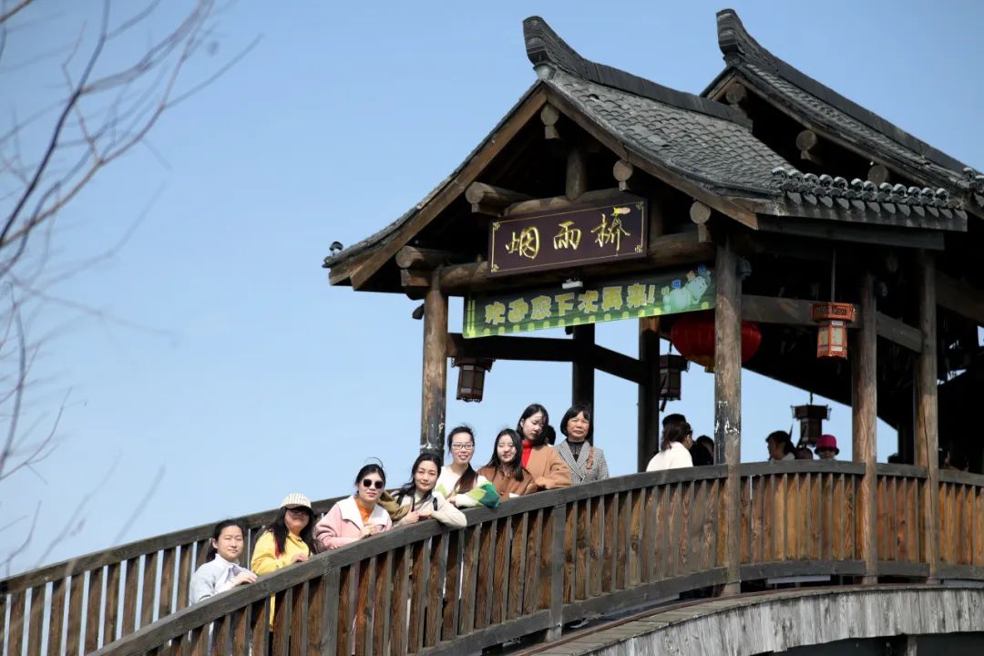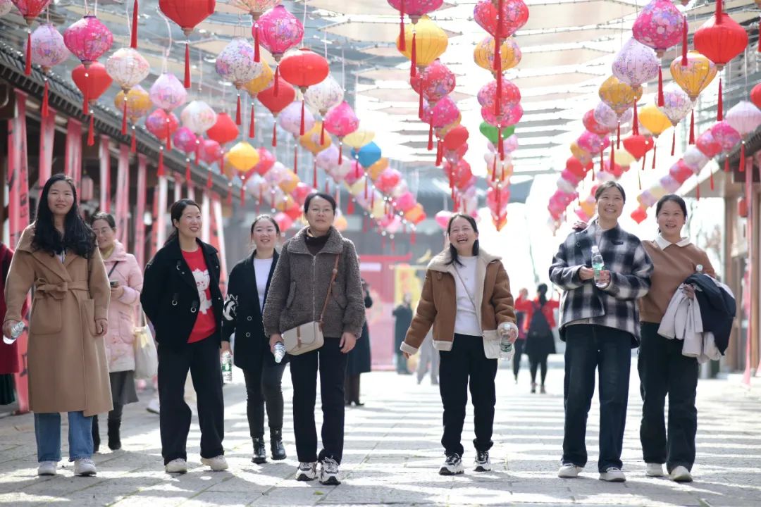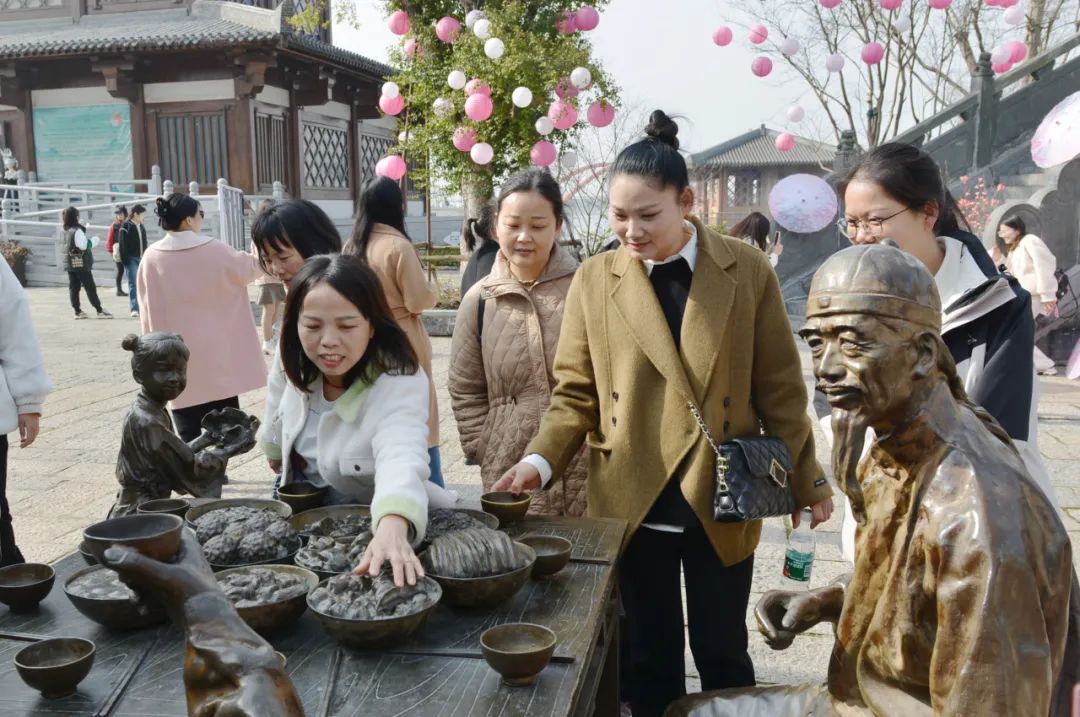 游覽過程中,女工們有的參觀小鎮(zhèn)書院,了解當?shù)氐臍v史文化;有的在小銅人雕塑旁合影留念,定格美好時光;有的登上文昌閣遠眺,感受湖光山色。