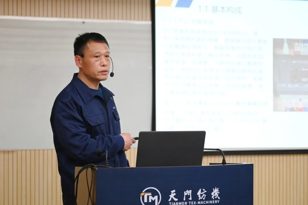 18名銷售經(jīng)理、18名售后服務(wù)人員作了2024年度工作總結(jié)及技術(shù)交流;售后服務(wù)中心主任于少波作售后服務(wù)工作總結(jié);電器工程師譚鵬飛作電器專業(yè)講座;首席技術(shù)專家鄭強(qiáng)就客戶反饋的突出問題進(jìn)行了分析,并交流技術(shù)改進(jìn)方案;副總經(jīng)理?xiàng)钗姆逯v解了公司產(chǎn)品研發(fā)方向及正在推行的技術(shù)工作;紗線網(wǎng)總工孟進(jìn)作并條工序?qū)I(yè)講座;紗線網(wǎng)首席技術(shù)專家趙建偉講解氣流紡典型解決方案;京奕特種纖維有限公司廠長孔國慶講解并條工序上的典型案例;匯川電器工程師陳翔宇、王康作交流分享。