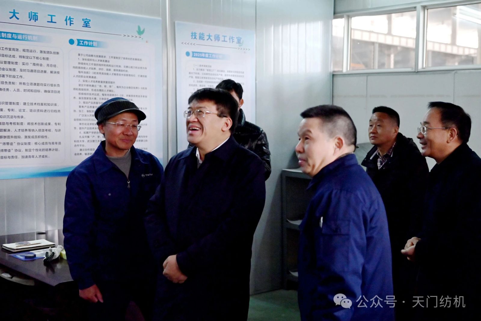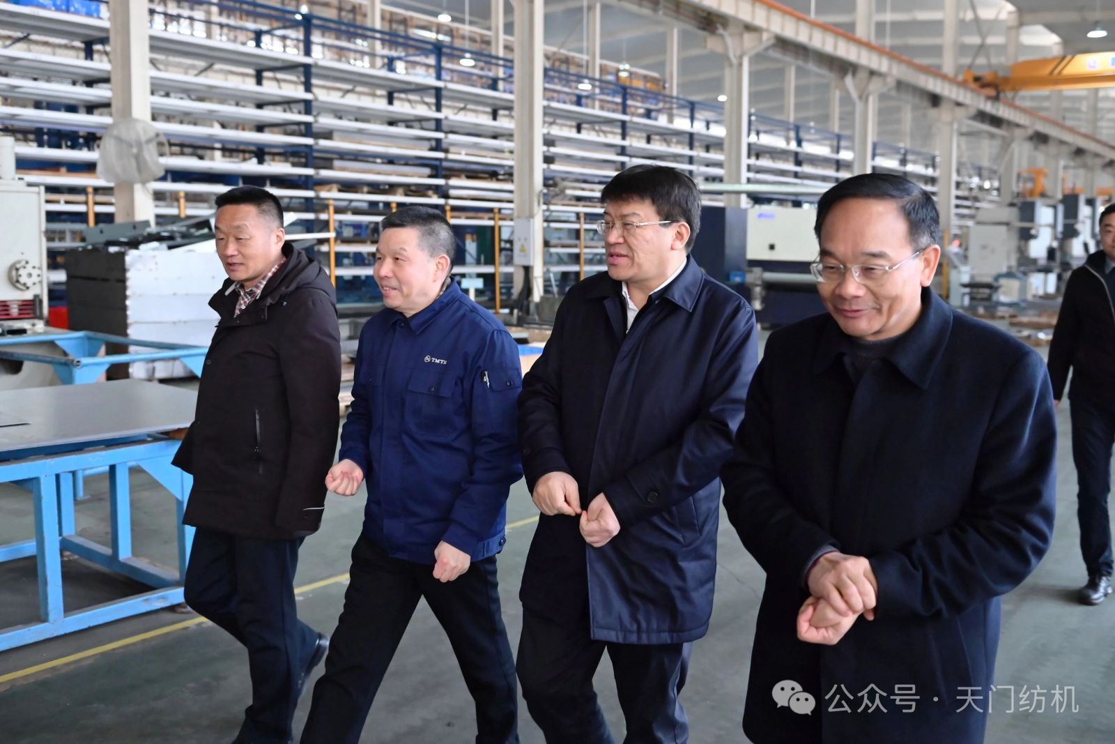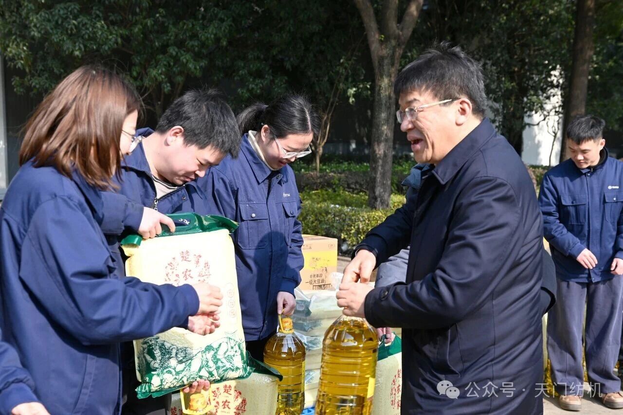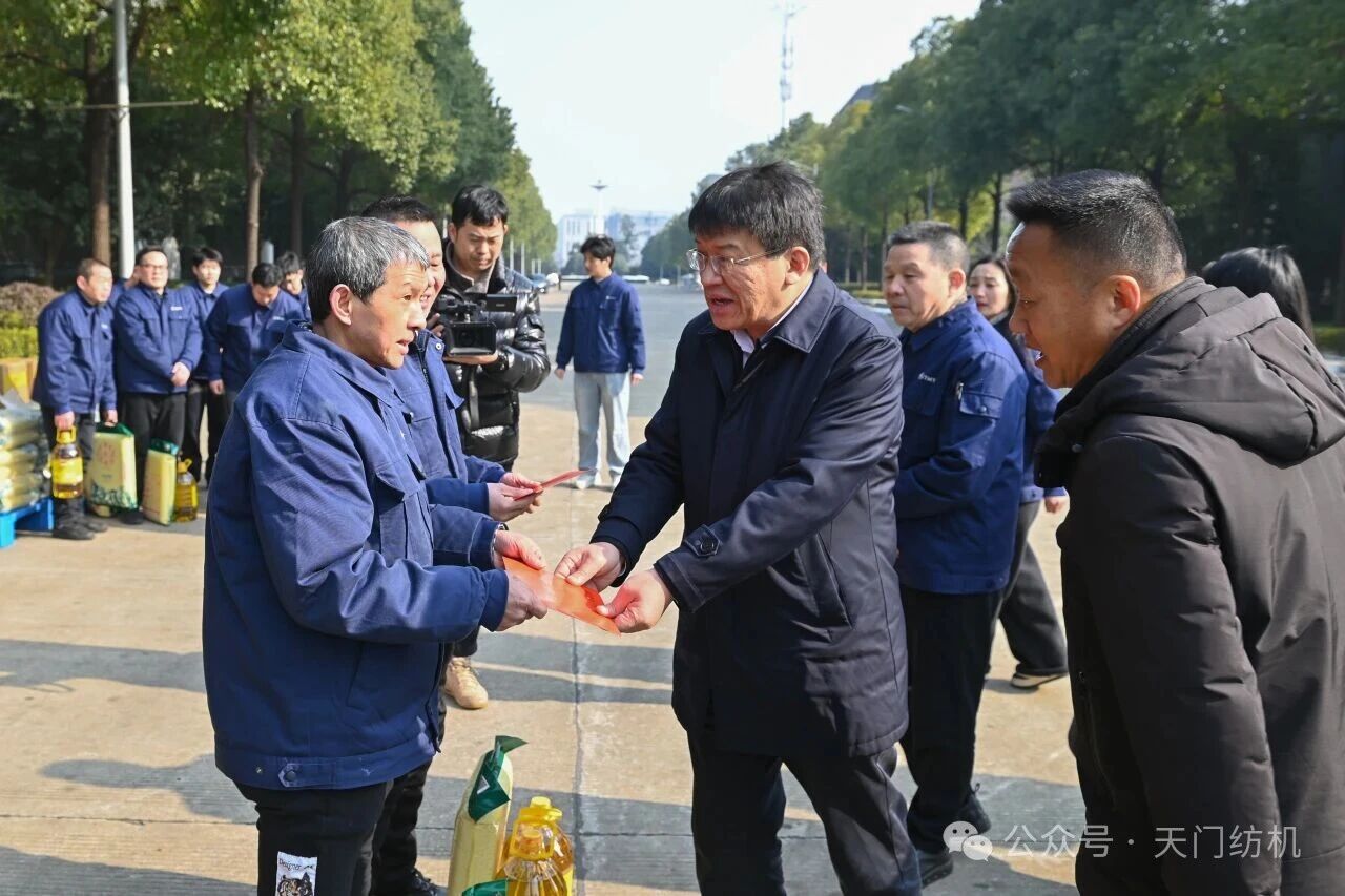 1月23日,湖北省總工會黨組成員、副主席馮家欣,省職工科技文化中心主任顧丹莉,省總工會經技部副部長余成剛等領導,在天門市人大常委會黨組成員、副主任陶家文,市總工會黨組書記、常務副主席江文等領導的陪同下蒞臨天門紡機,開展2026年春節送溫暖走訪慰問活動,為我公司車間班組一線職工及困難職工,送上工會組織的“暖心大禮包”。公司董事長沈方勇、工會主席丁亮等公司領導熱情接待慰問組一行并參與慰問活動。