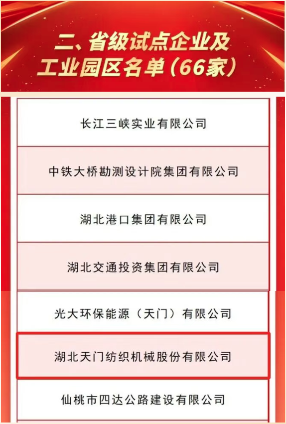 近日,湖北省總工會(huì)公布第四批提升職工生活品質(zhì)省級(jí)試點(diǎn)單位評(píng)選結(jié)果,天門紡機(jī)成功入選,成為全省66家省級(jí)試點(diǎn)企業(yè)之一。